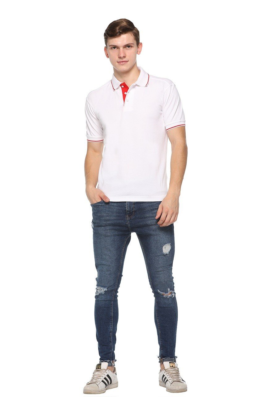 - Sporty Red Line Detailing: The standout red line design across the collar and sleeves adds a modern, dynamic touch to the traditional white polo, making it perfect for fashion-forward individuals.