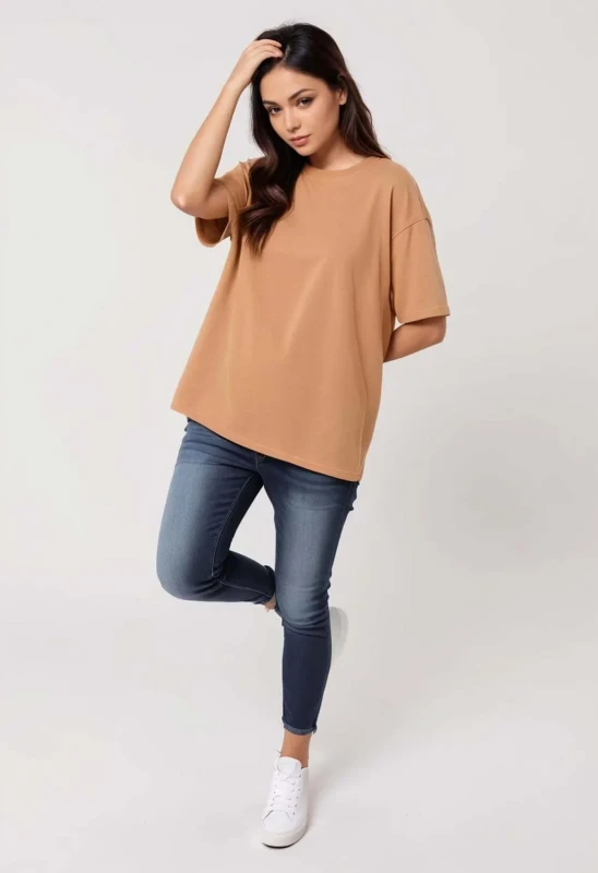 Experience the perfect blend of style and comfort with our Women's Cotton Oversize T-Shirt in beige—a must-have addition to your everyday collection